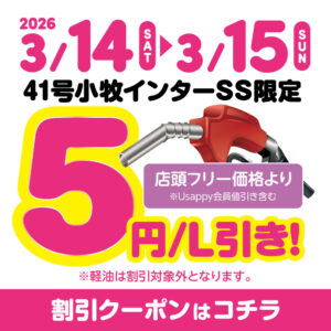 3/14(土)~15(日) 5円/L引き!【41号小牧インターSS限定】