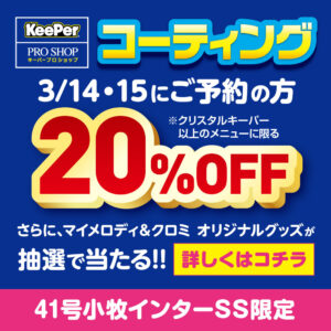 3/14(土)~15(日) コーティング20%OFF【41号小牧インターSS限定】